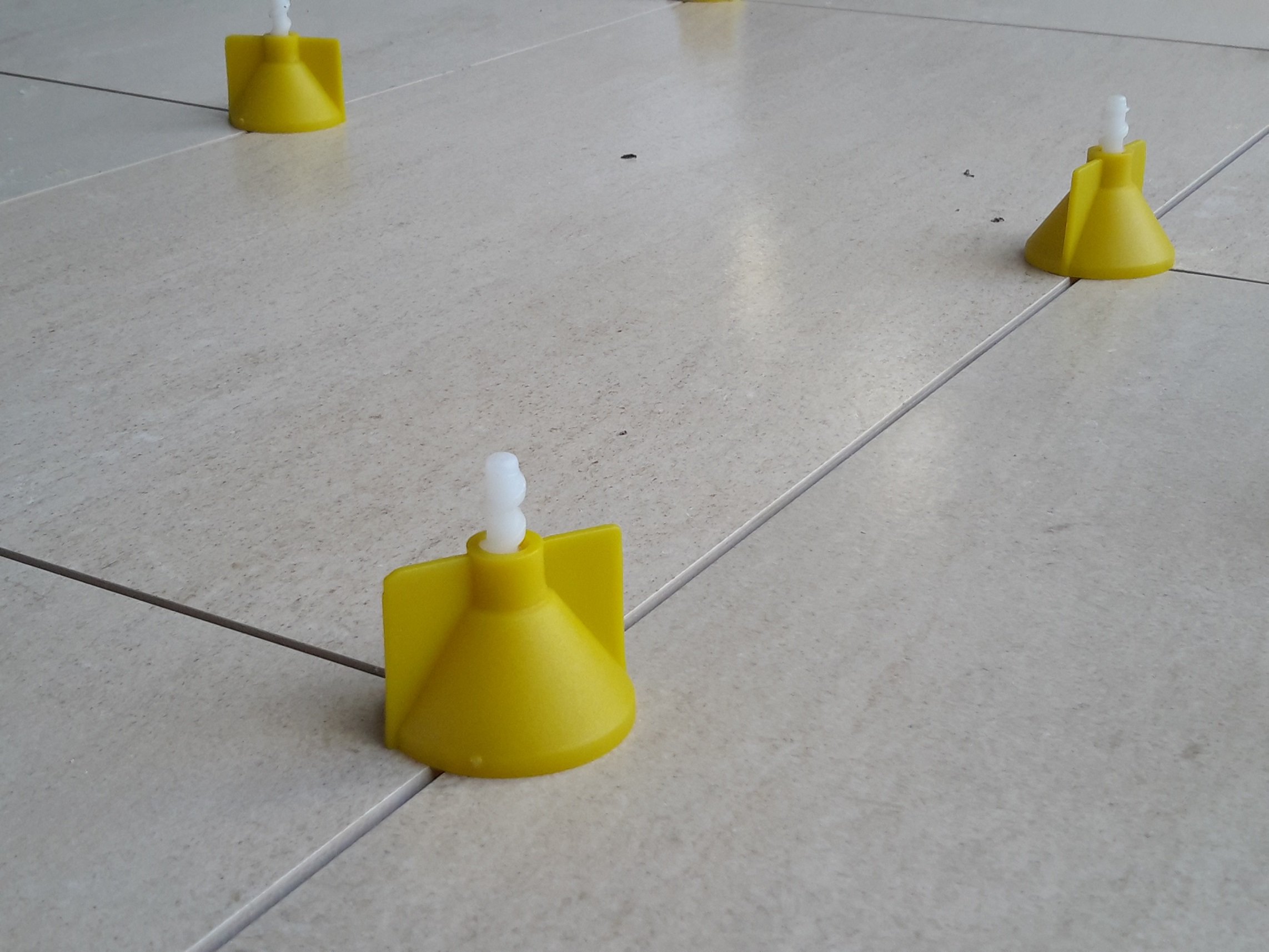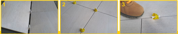 Novinka u nivelačního levelling systému! K systému SAP2 a SAP3 přibyl další - SAP4. Nivelační systém tvořený sponou a kloboučkem - SAP4. Nevyhovují Vám klínky, jejich zasouvání do spon? Bolí Vás ruce? Vyberte si klouboučky. Jednoduše nasaďte na sponu a zatočte! Pro dlaždice se stejnou i s různou tloušťkou do výšky 20 mm, šířka spáry 2 mm. Nivelační klobouček a distanční spona ve třech tvarech: rovná spona spona ve tvaru T spona křížová